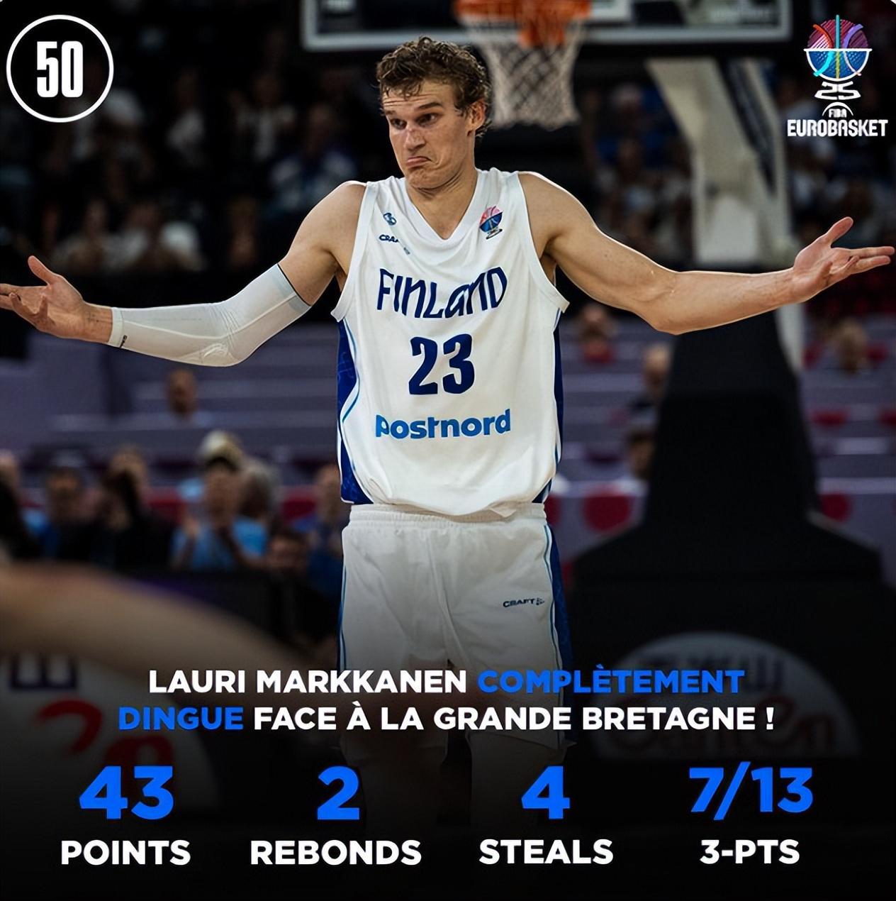 欧洲记者:我的天啊,短短23分钟拿到43分,这是欧洲杯历史上首位23分钟能拿下至少40+的纪录,芬兰球迷纷纷高呼这人太神了。